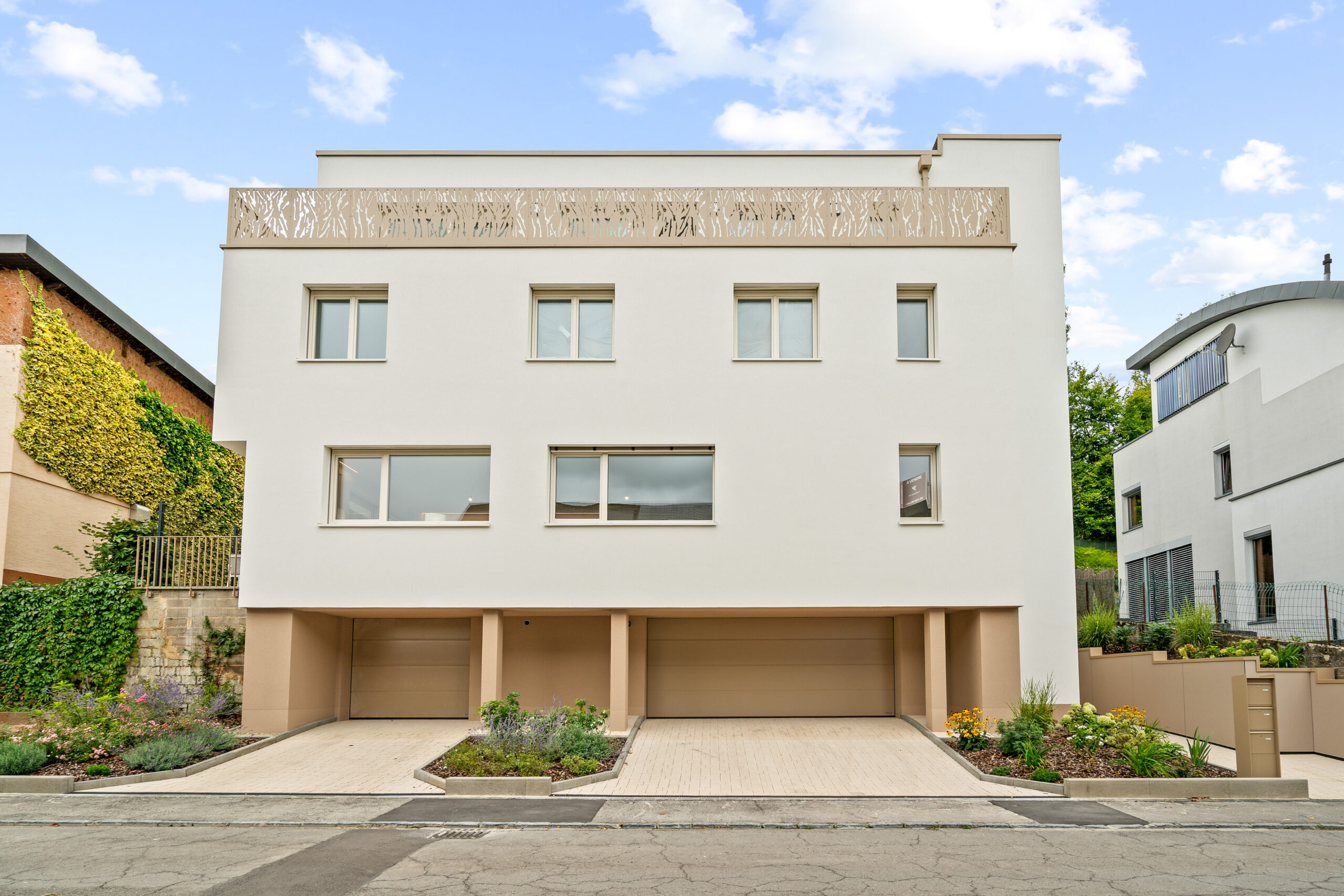 Nouveau projet à la lisière de forêt, niché dans la colline avec une vue d’exception sur la vallée de Steinsel et jusqu’au Kirchberg.